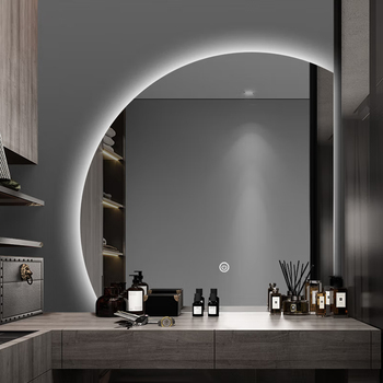 กระจกห้องน้ำครึ่งรอบพร้อมไฟกระจก LED อัจฉริยะแบบไม่สม่ำเสมอ